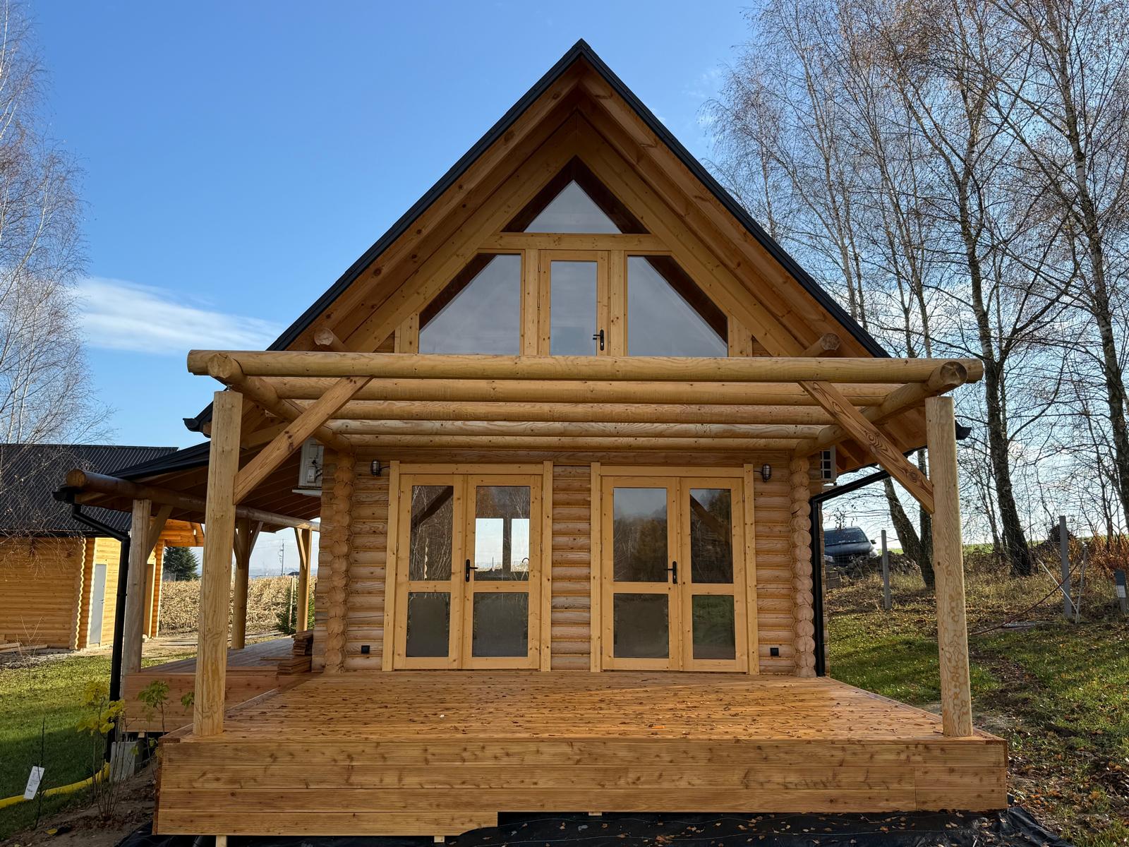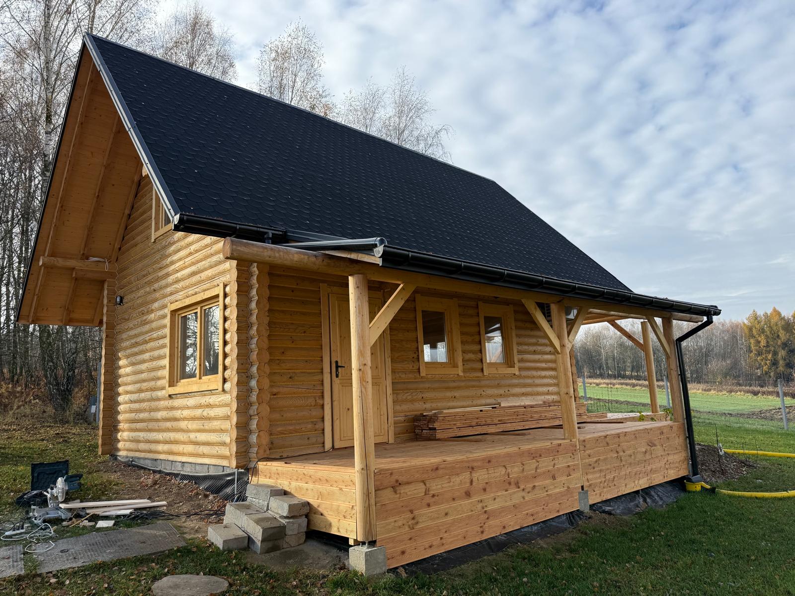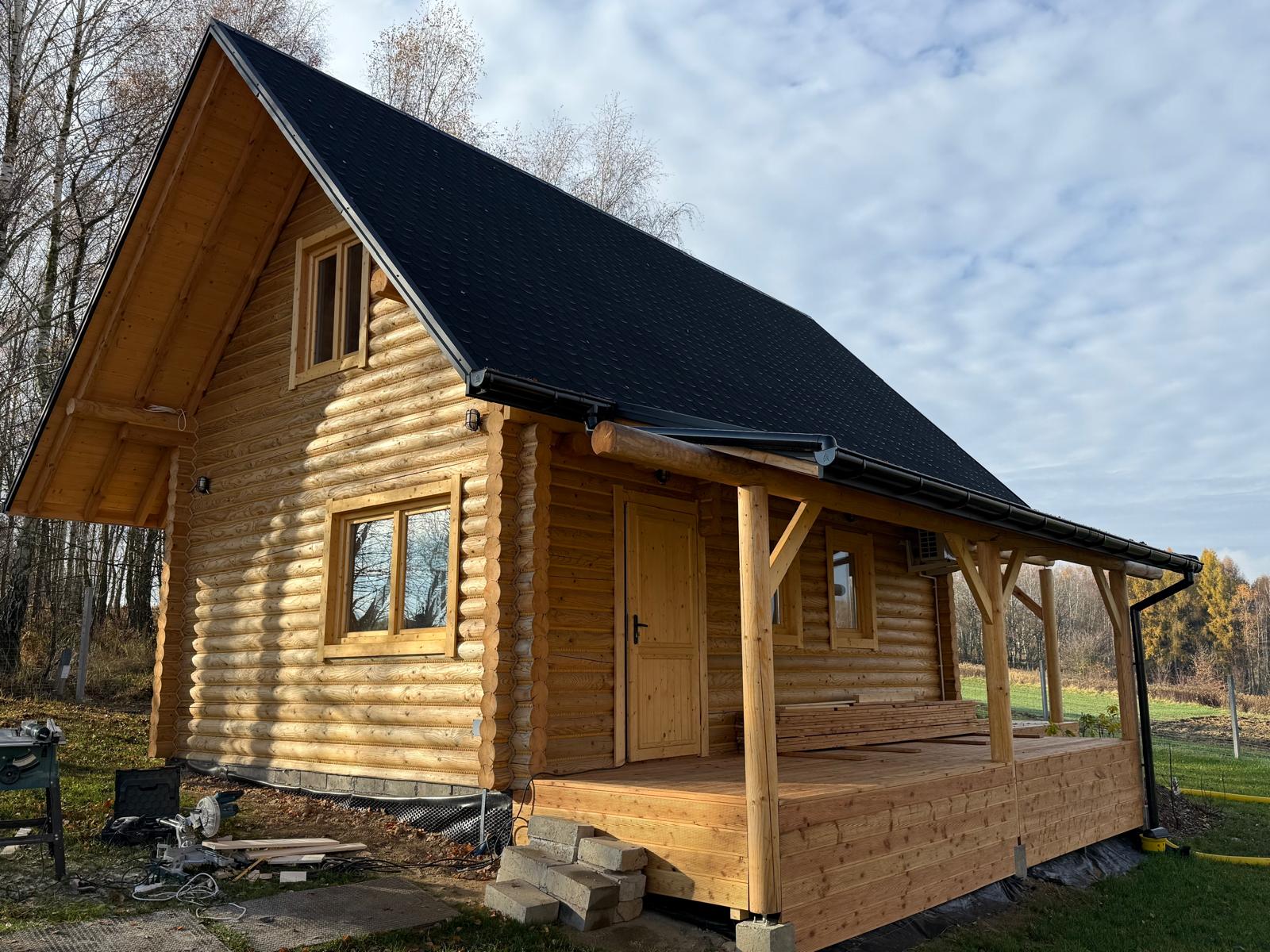 Oferujemy piękny domek letniskowy/całoroczny z pełnych bali drewnianych o średnicy 180 mm, w skład którego wchodzą: