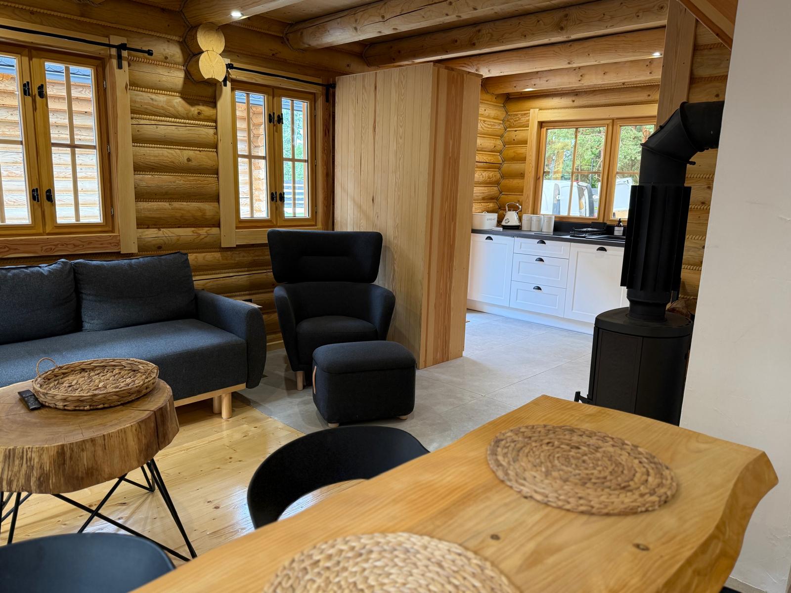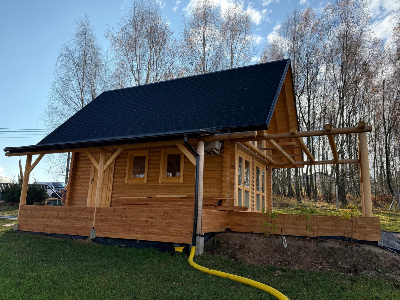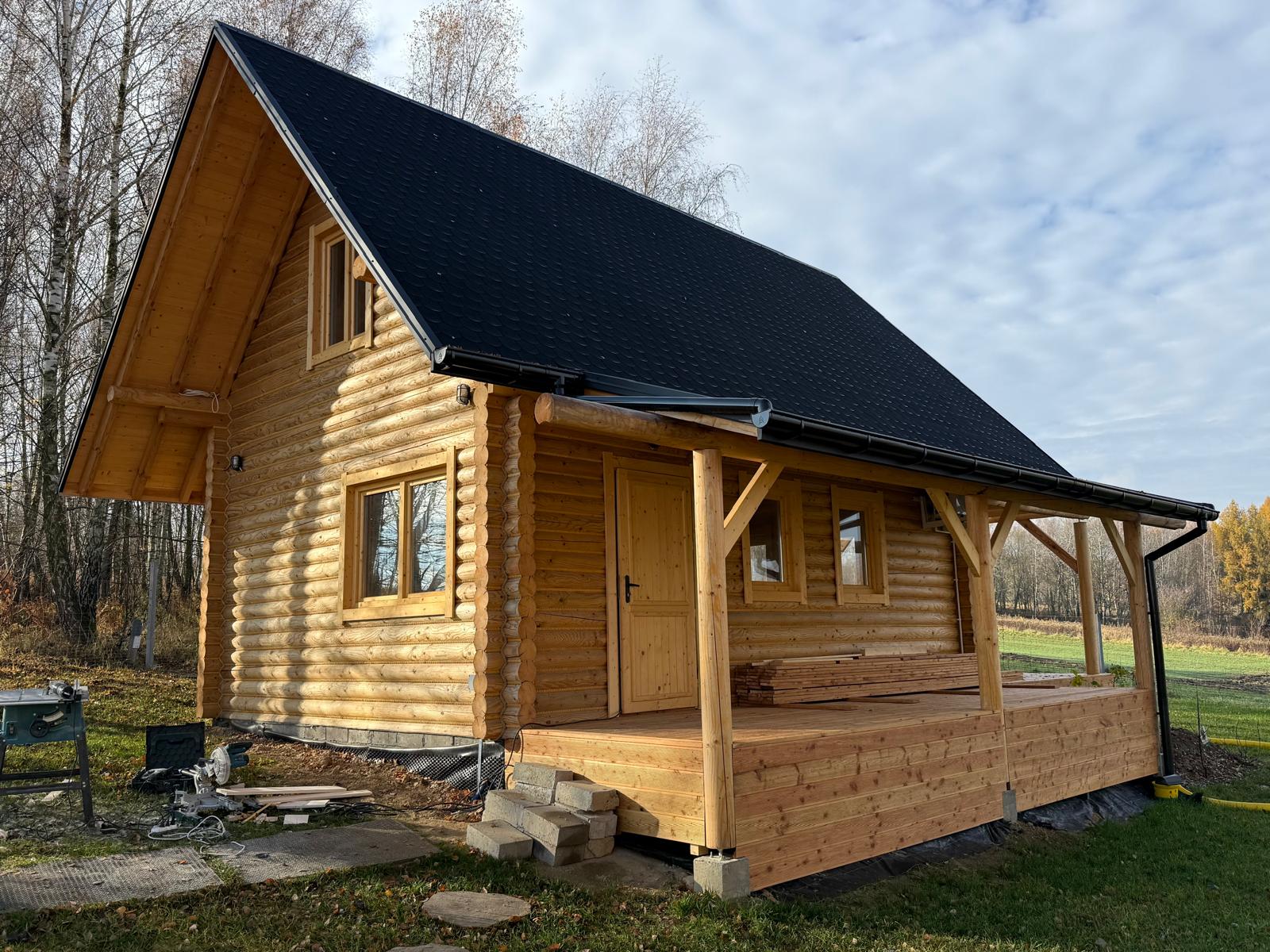 Oferujemy piękny domek letniskowy/całoroczny z pełnych bali drewnianych o średnicy 180 mm, w skład którego wchodzą: