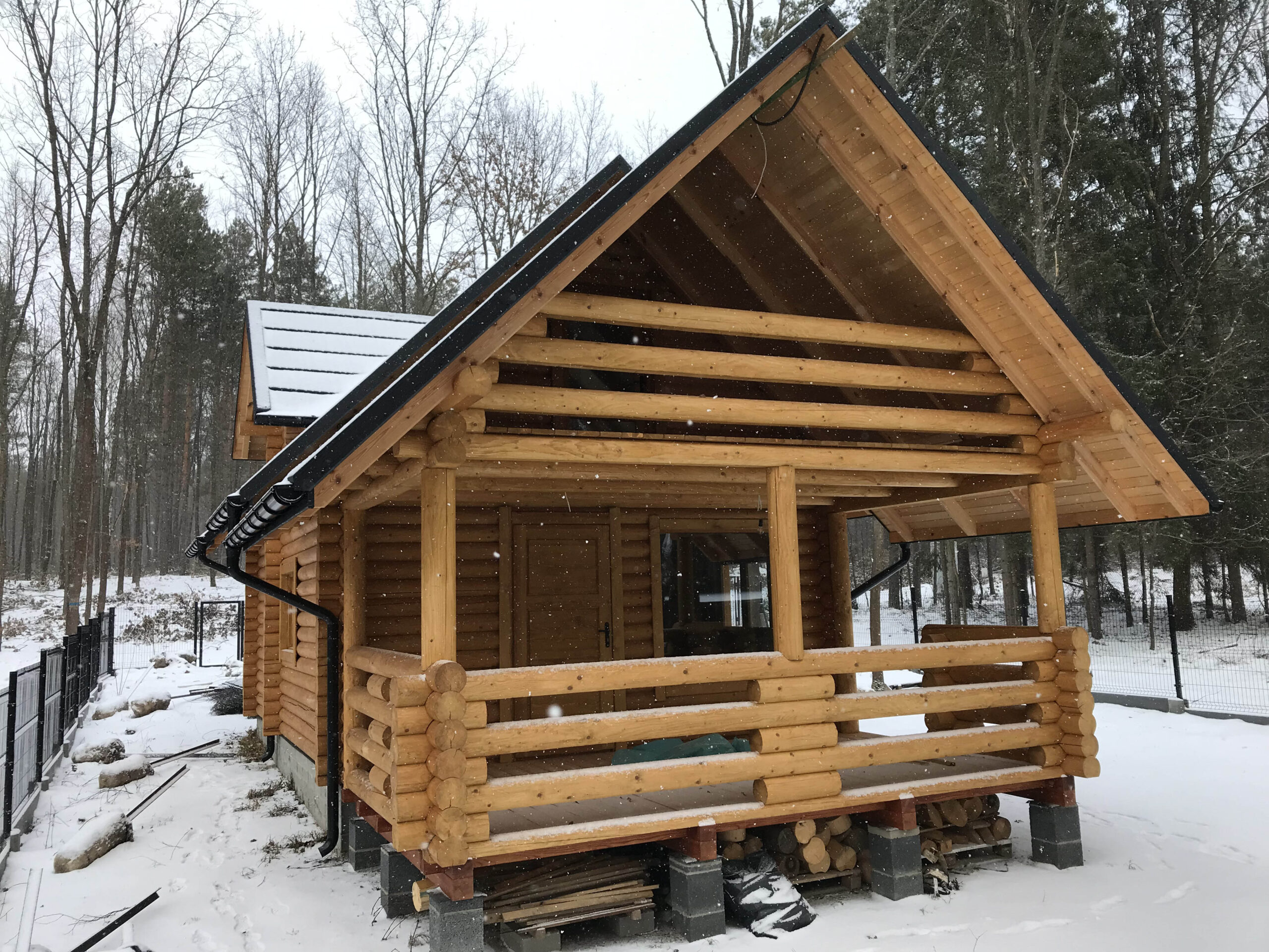 Domek letniskowy/całoroczny z pełnych bali drewnianych o średnicy 180 mm, w skład którego wchodzą: