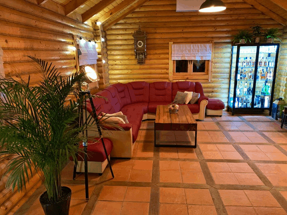 Mamy do zaoferowania piękny domek letniskowy całoroczny z pełnych bali drewnianych o średnice 180 mm, w skład którego wchodzą: