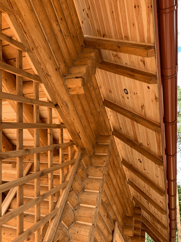 Ściany wykonane są z pełnych bal drewnianych o średnicy 180 mm w skład których wchodzą: