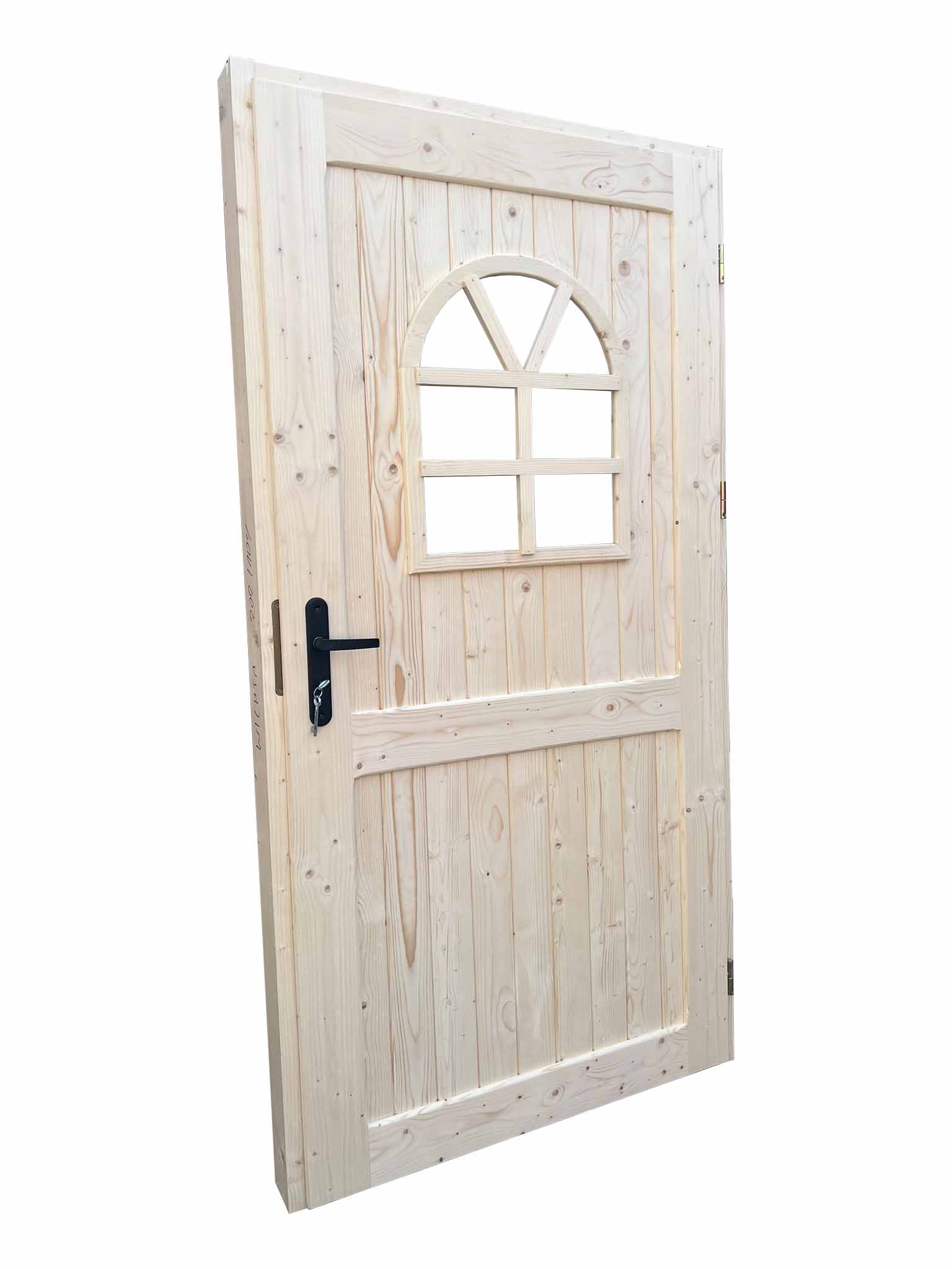 Drzwi są wykonane z drewna sosnowego/świerkowego suszonego komorowo, zaimpregnowane środkiem Fobos M4.
