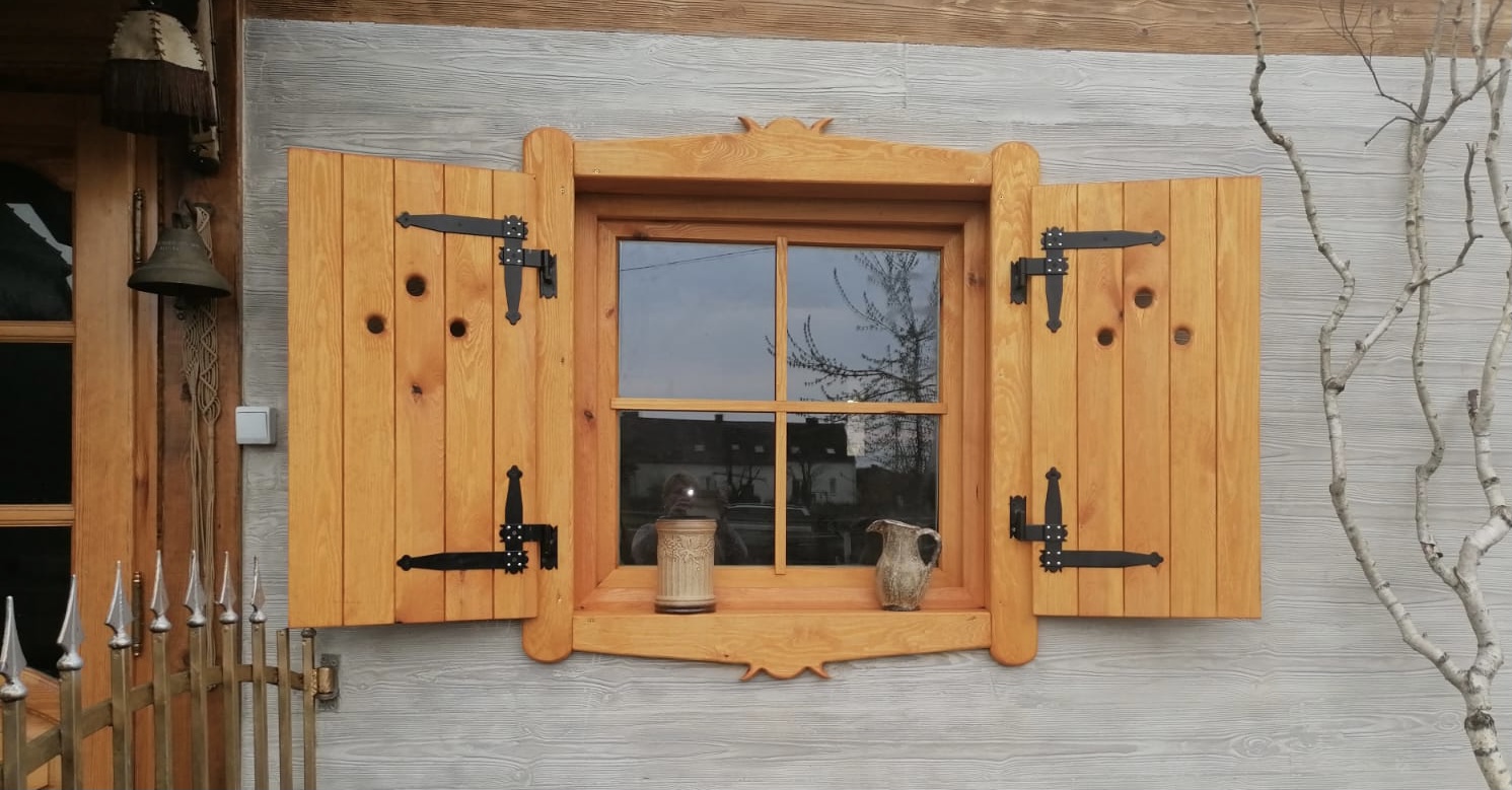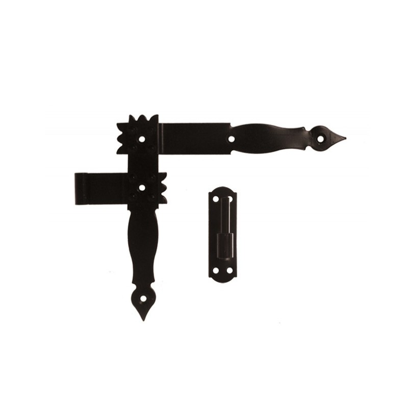 Wysokiej jakości ozdobne zawiasy kątowe do okiennic. Kolor czarny.